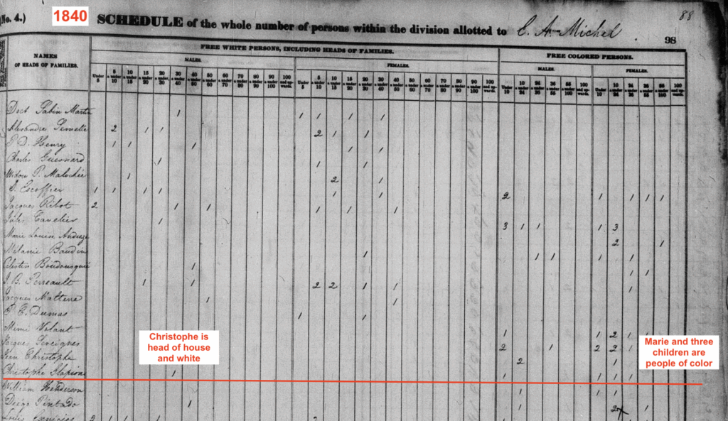 Where many strived to pass for white, Christophe Glapion passed for Black to live with the woman of his dreams. I suspect he was white when it suited, and Black the rest of the time. He lived with a foot in both worlds. Like the Pope’s ancestors, he shows up in one census as colored, and in another as white. Truth, I suspect that being able to pass in both worlds meant that he could escape SOME of the social cost. But it wasn’t zero. I have the documents, the real estate transactions, the wills that show the family finagling the oppressive system to maintain a legacy.